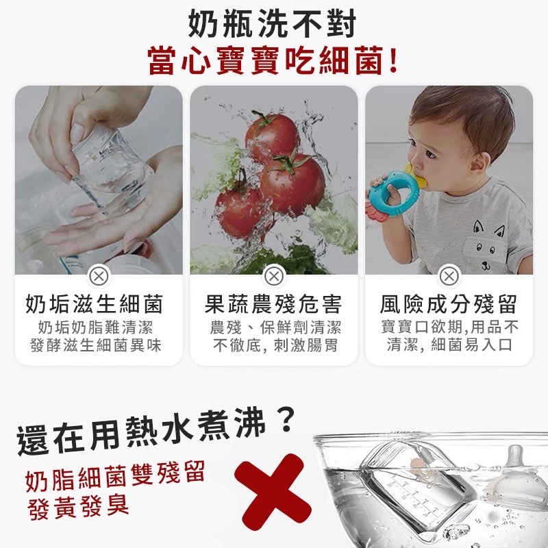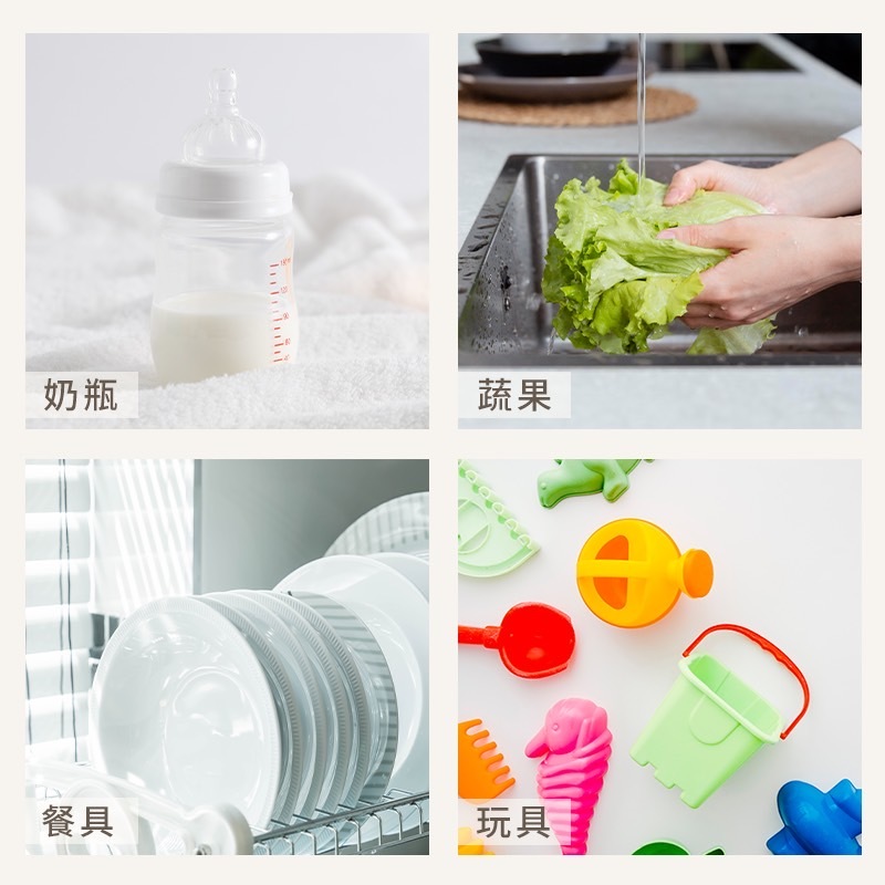 “適用清潔奶瓶、餐具、玩具、哺育相關用品、蔬果等
